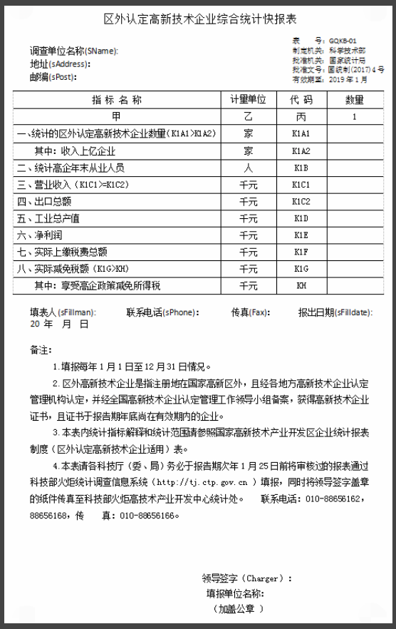 國(guó)家科技部火炬統(tǒng)計(jì)報(bào)表