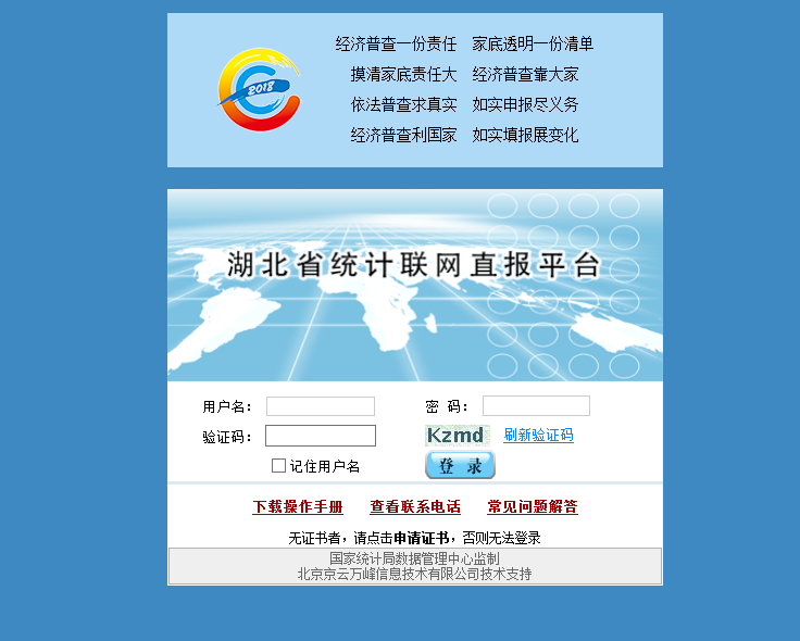 http://tjj.hubei.gov.cn/bsfw/qywszb/ 或 http://221.232.129.59/dr/queryLoginInfo.do
