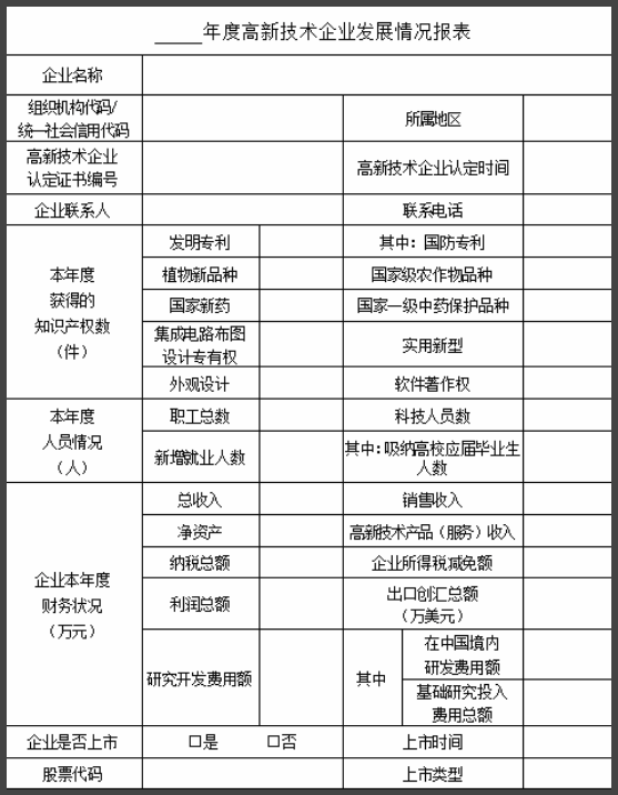 高新年報(bào)發(fā)展情況報(bào)表填寫
